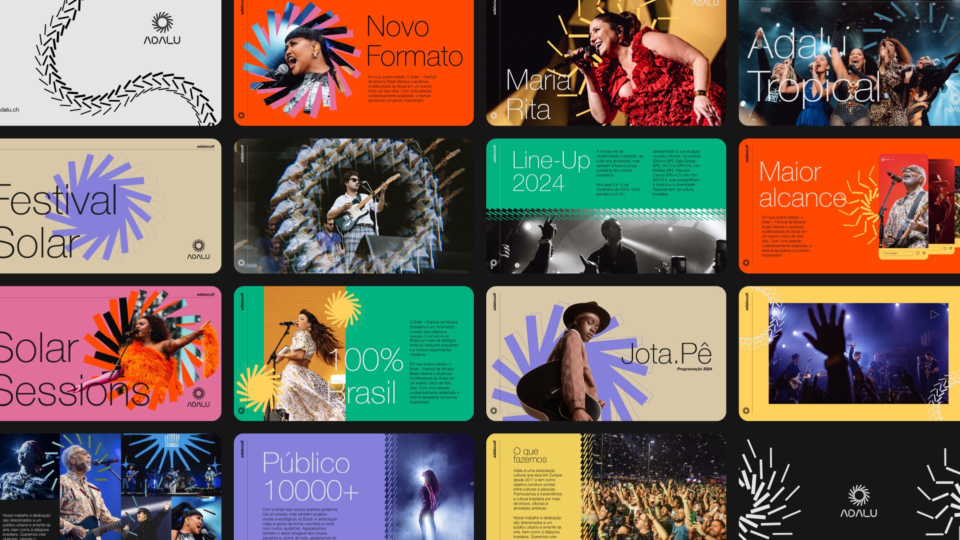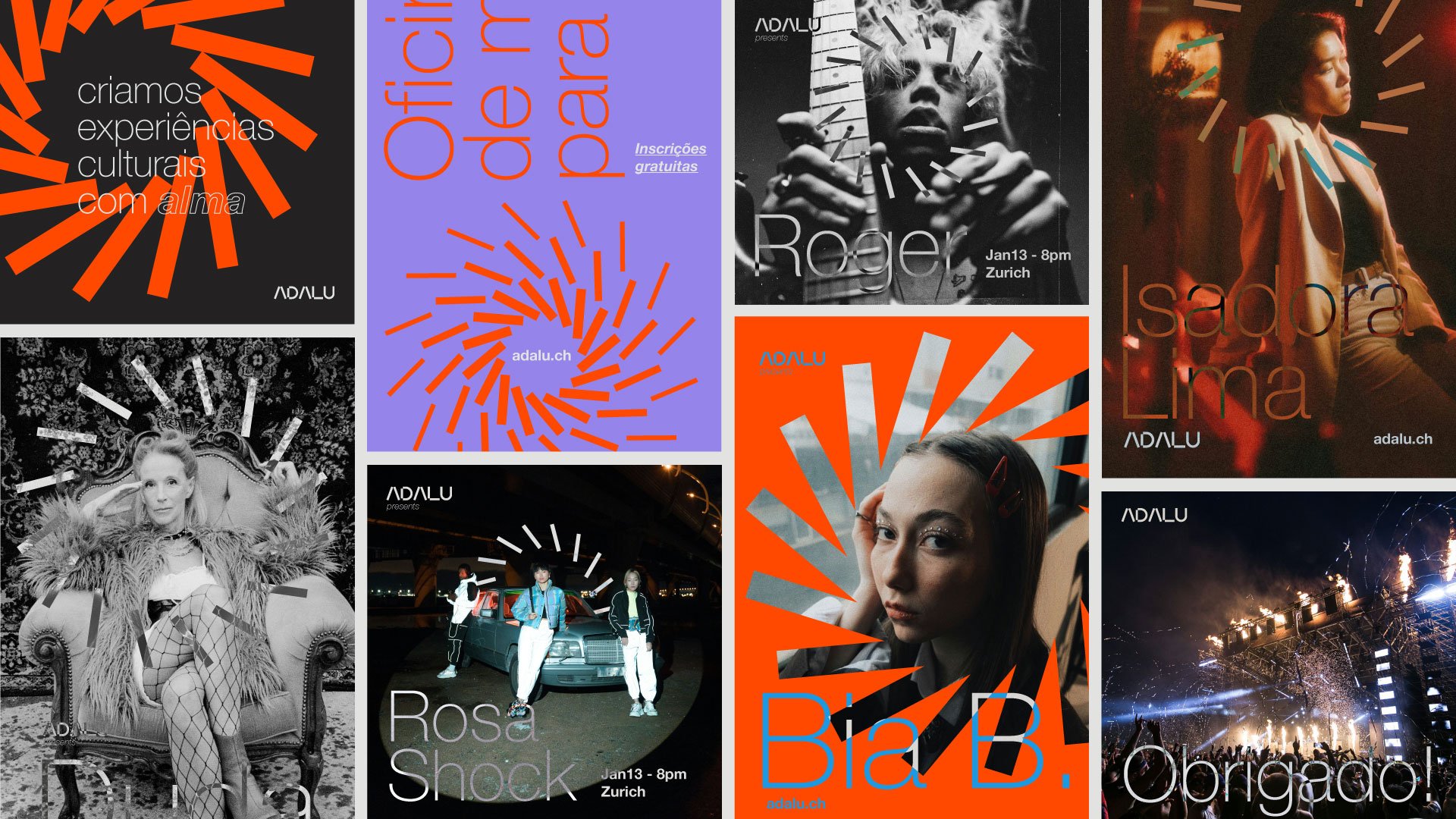 O projeto de redesign da identidade visual da Adalu é todo sobre criar pontes entre as culturas brasileira e suíça, dando uma nova vida à sua expressão visual. Nos inspiramos em signos gráficos de matriz africana, uma herança cultural tão forte no Brasil. Esses elementos não só adicionam profundidade à identidade, mas também celebram as raízes históricas que moldam a identidade da Adalu. A característica tipográfica remonta ao clássico suíço e se conecta a uma paleta de cores vibrantes, e assim capturamos a essência dinâmica e vibrante da associação. Nada de formalidades por aqui – queríamos transmitir uma sensação de liberdade e criatividade. O resultado é uma identidade visual que pulsa com energia e autenticidade, refletindo a missão da Adalu de promover a cultura e a arte em todas as suas formas.