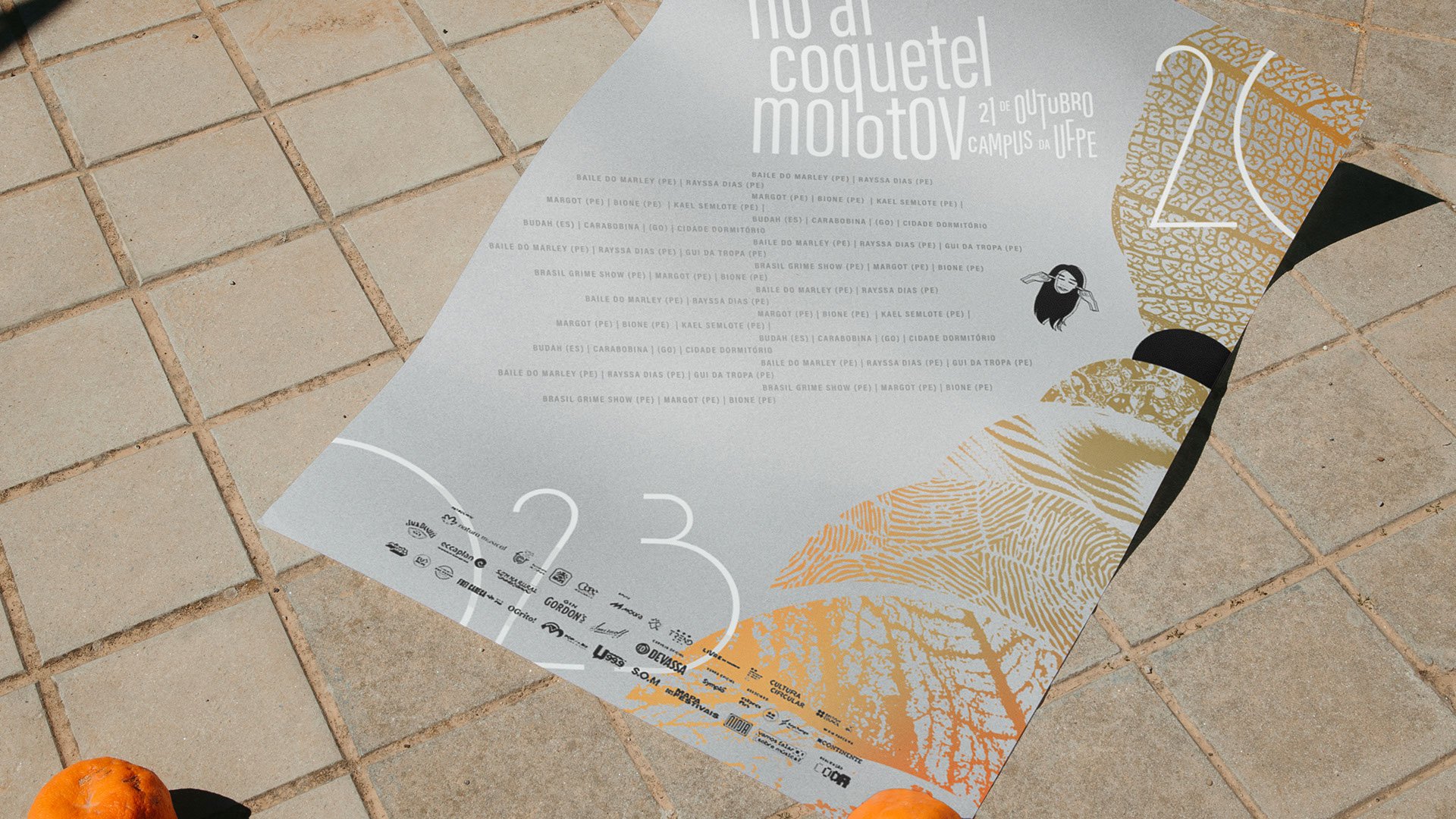 Há 19 anos a gente curte, admira, aprende e se diverte com o festival No Ar Coquetel Molotov. O festival vai muito além da música, é um recorte de manifestações culturais, do lugar, do tempo ao redor. Só que pra gente tem também um elemento faz nossos olhos brilharem ainda mais: o design dos cartazes. Em dezenove edições, designers e artistas que a gente é absolutamente fã desenvolveu expressões visuais lindas, disruptivas, impactantes, f*das. Esse ano, na simbólica vigésima edição, perguntaram se a gente topava fazer. Respiramos fundo, aumentamos o volume e deu nisso. Vida longa ao #noarcm!