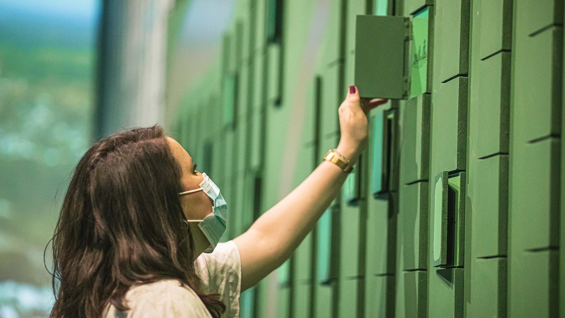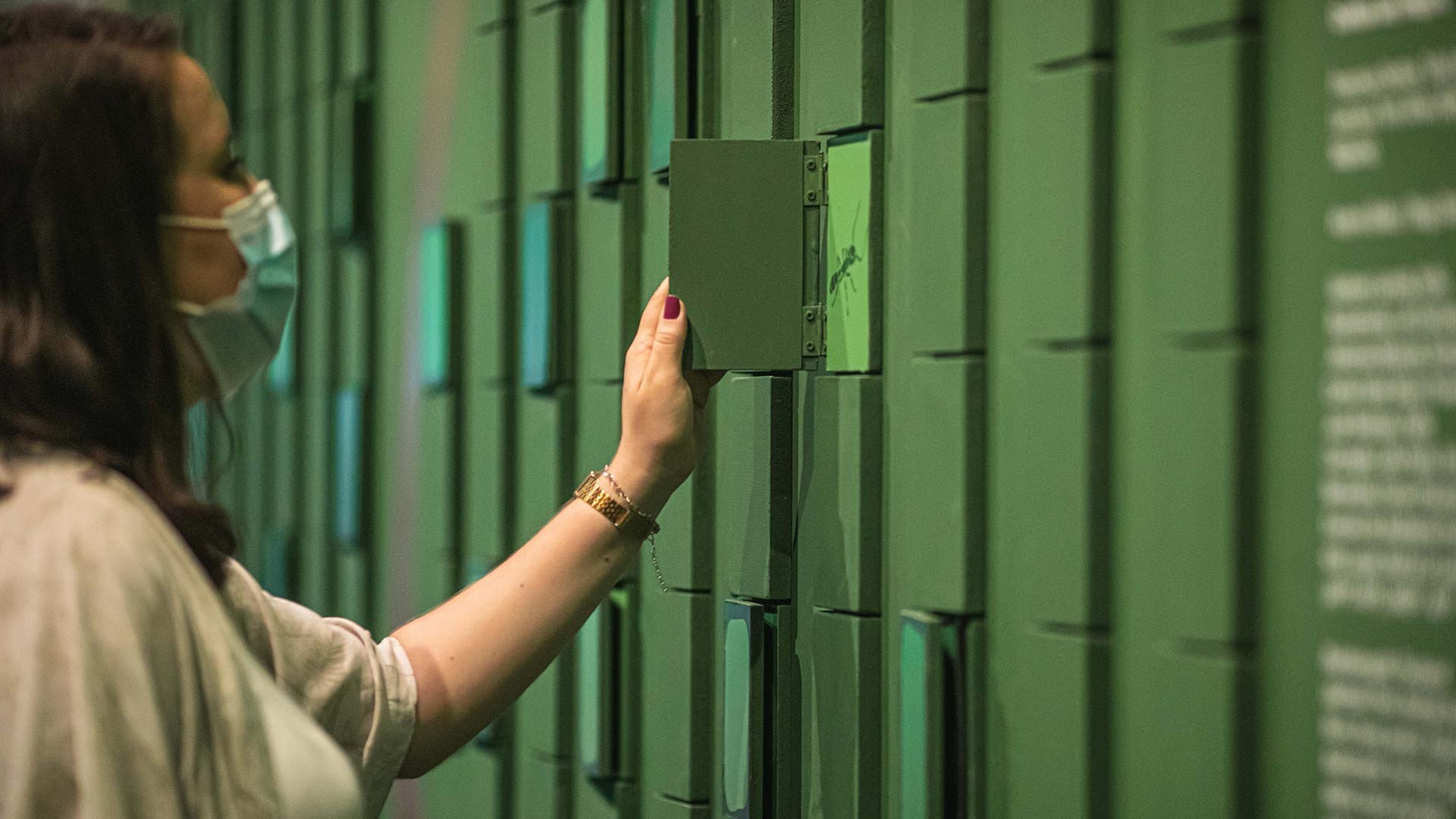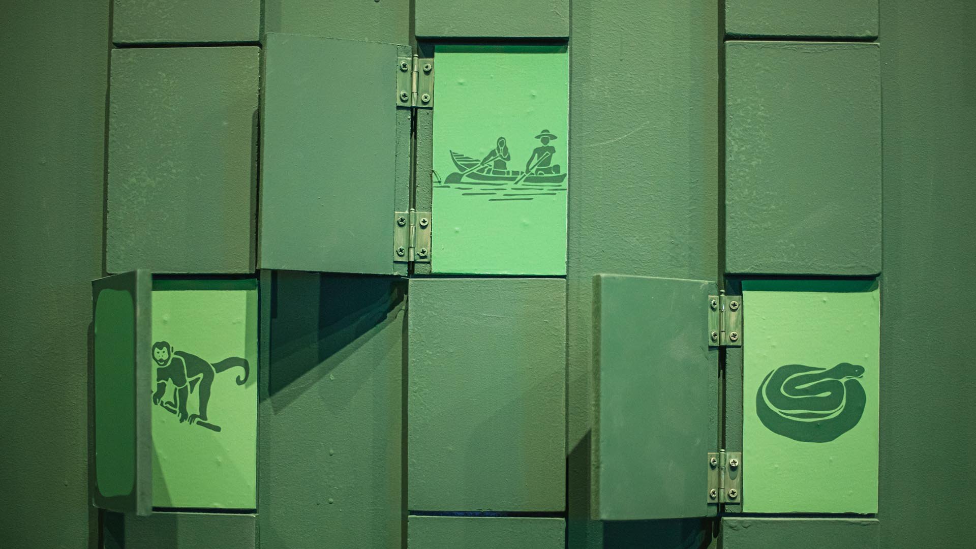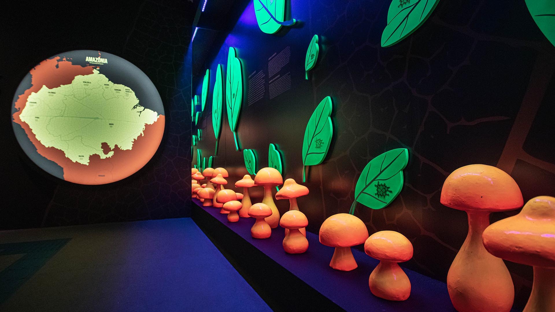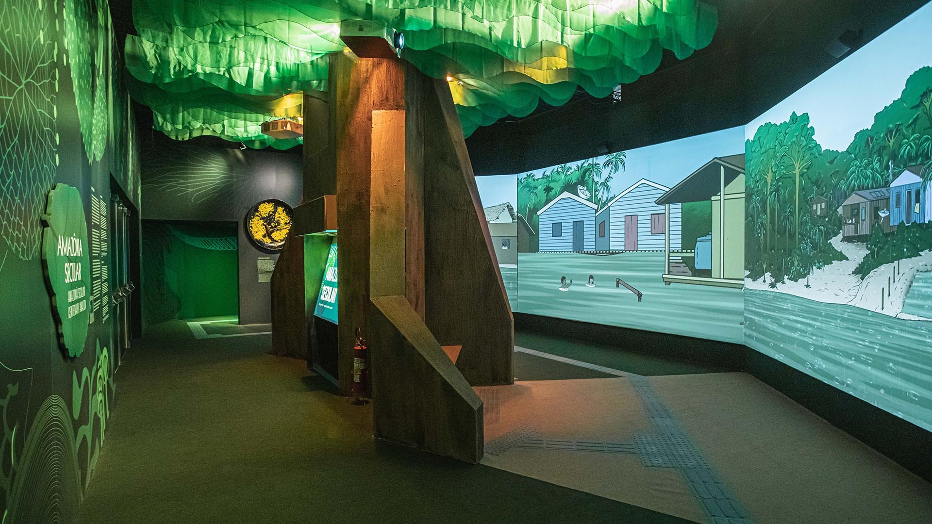 O visitante pode se sentir parte da floresta a partir da ambientação, que traz atividades interativas, elementos que revelam a diversidade da Amazônia e a atmosfera sonora da região.