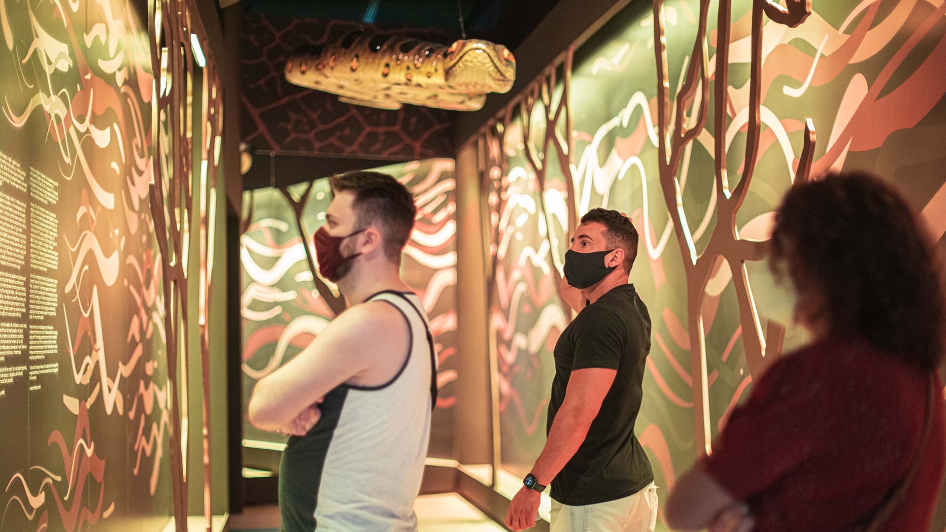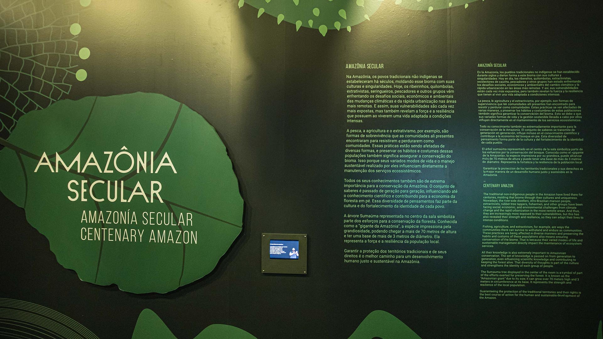 Presente em oito países e um território, ocupando quase metade do Brasil, a Amazônia abriga atualmente mais de 30 milhões de pessoas, milhares de espécies de plantas e é uma das regiões mais biodiversas do globo. Para refletir essa magnitude, a exposição conta com o maior número de artefatos da história do Museu do Amanhã.
