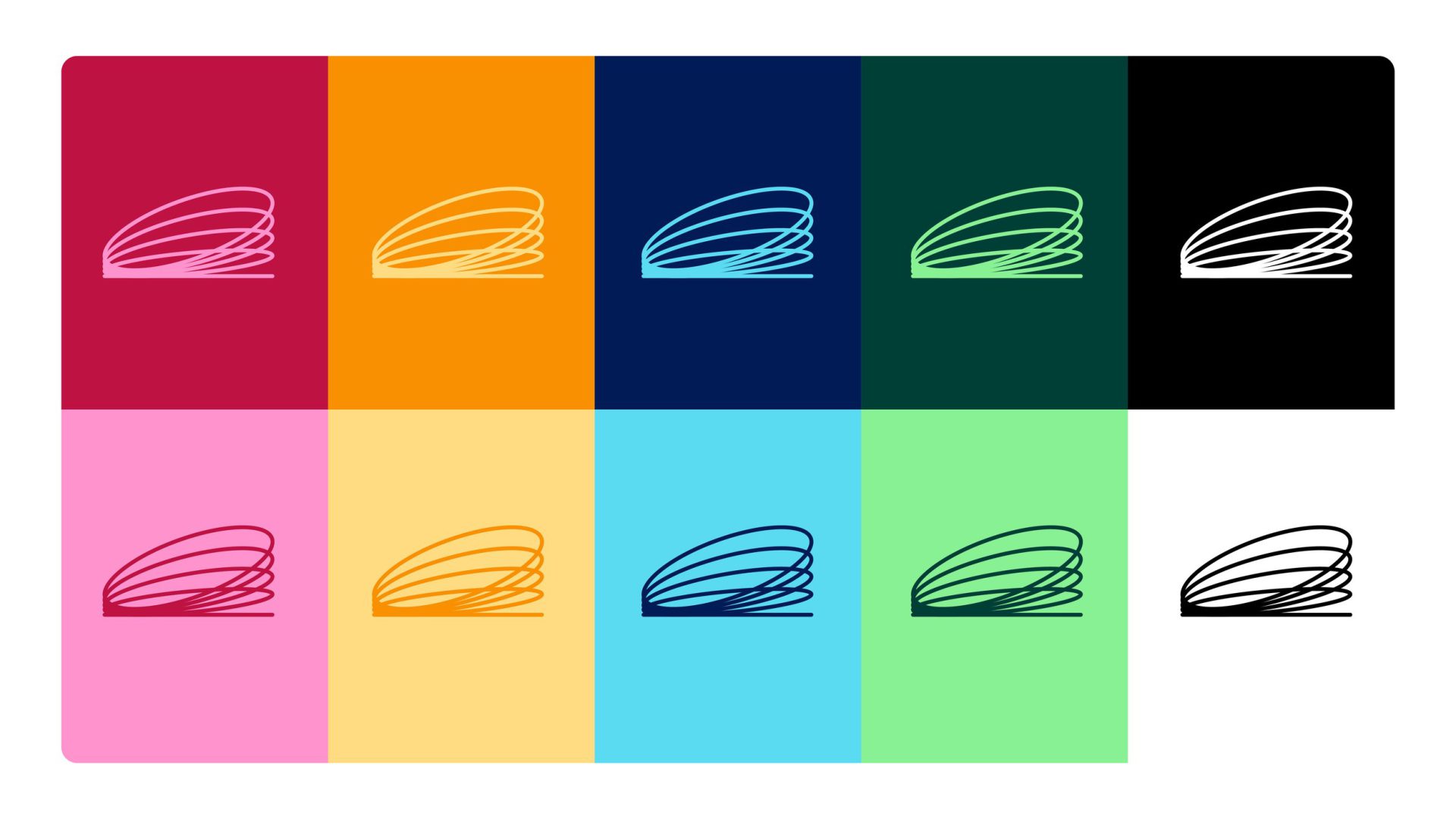 A marca foi desenhada com base nessa energia contemporânea e inclusiva. As formas geométricas e os elementos gráficos remetem ao dinamismo das atividades do parque — do skate à galeria, da praça à beira-mar. A paleta cromática parte do bordô, cor protagonista, e se expande em tons que reforçam o contraste, a convivência e a intensidade do espaço.