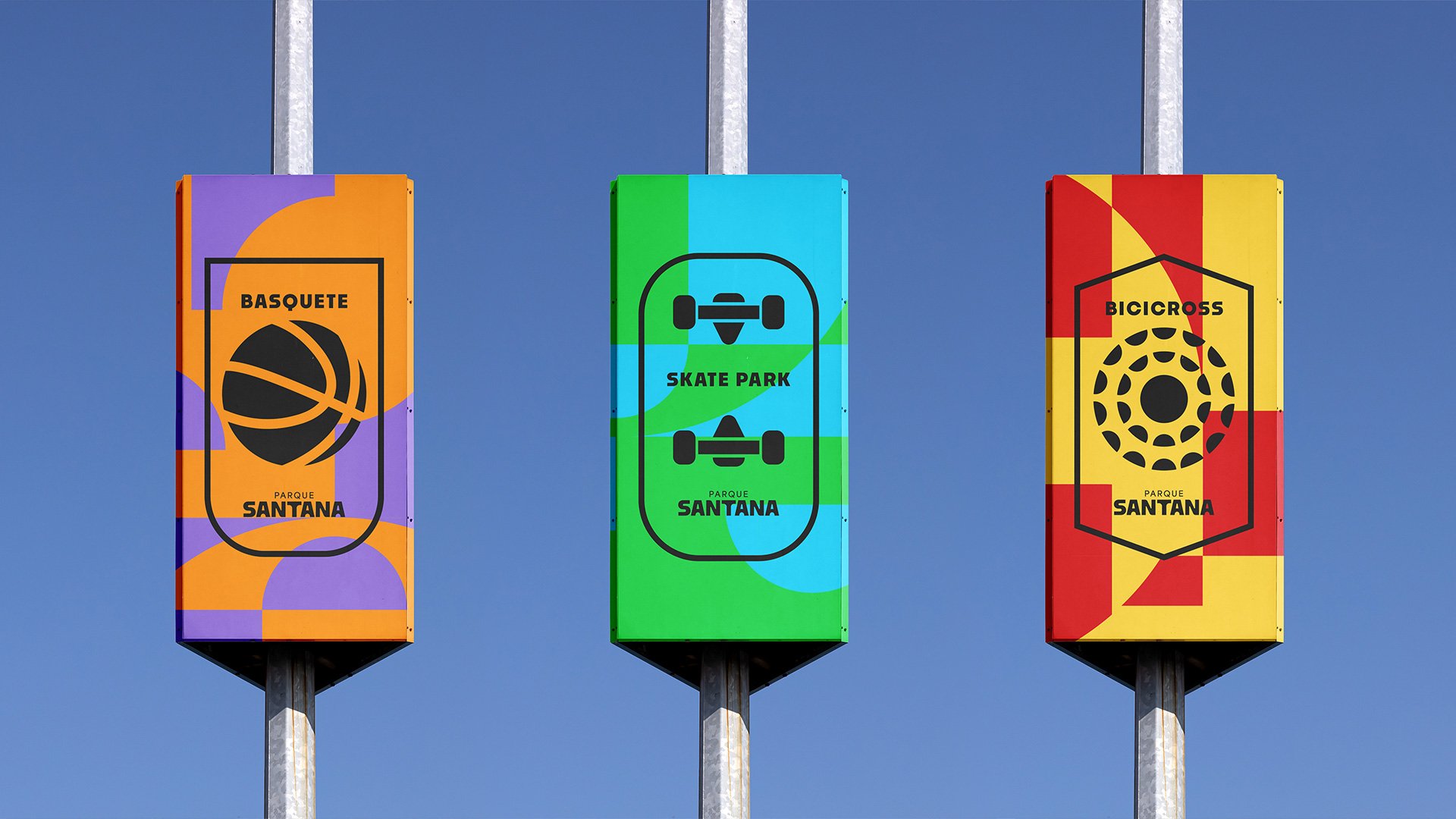 A tipografia firme e acessível reforça o tom direto e popular do parque. A iconografia, inspirada em brasões e símbolos esportivos, amplia o senso de pertencimento. E como em toda identidade viva, os grafismos são versáteis, podendo se adaptar a novas programações e formatos.