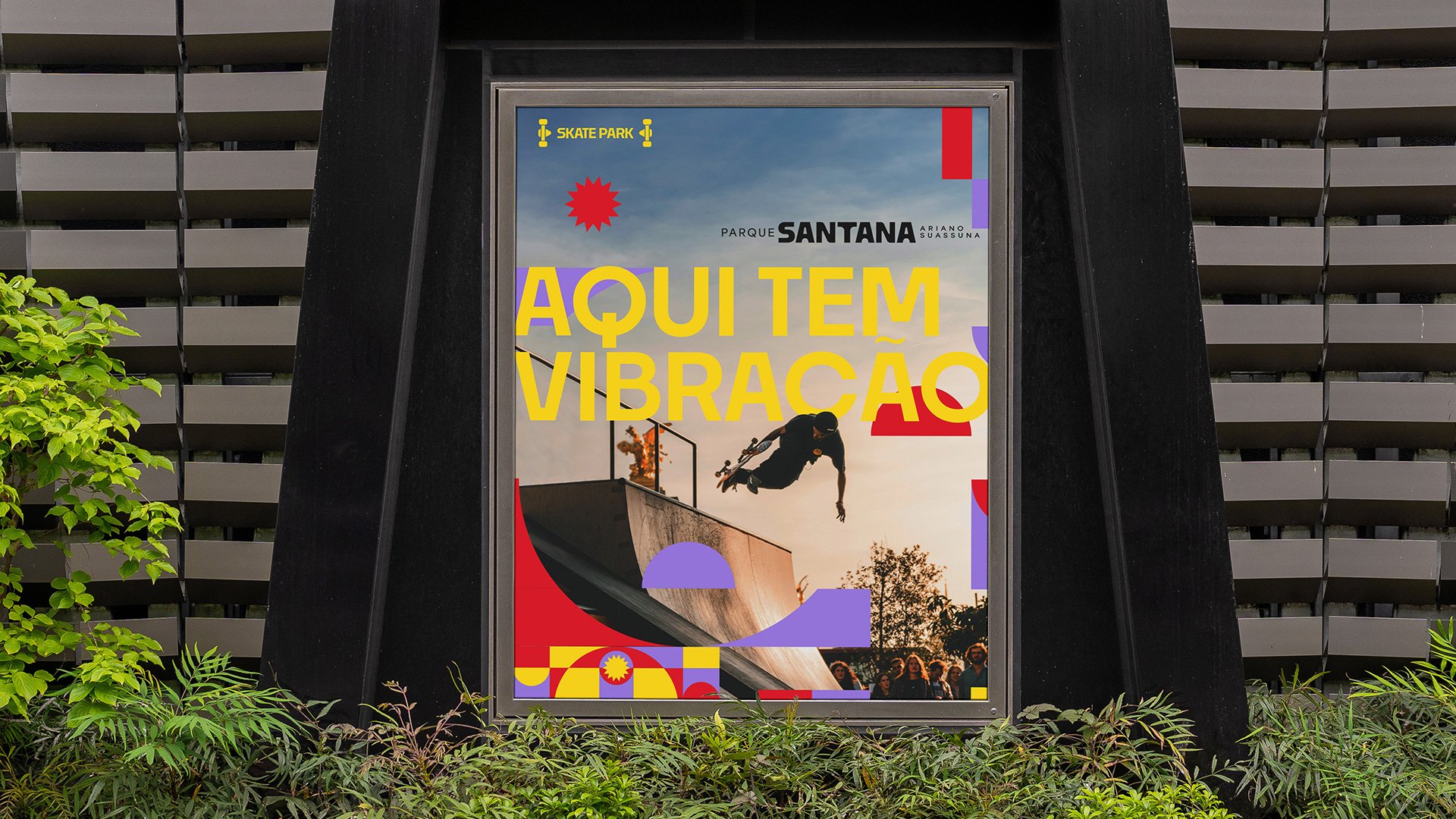A marca traduz a variedade de práticas e públicos que ocupam o espaço diariamente. Os elementos gráficos remetem ao mosaico de atividades — shows, esportes, feiras e momentos de lazer — enquanto o amarelo se destaca como protagonista, evocando energia, calor e visibilidade.
